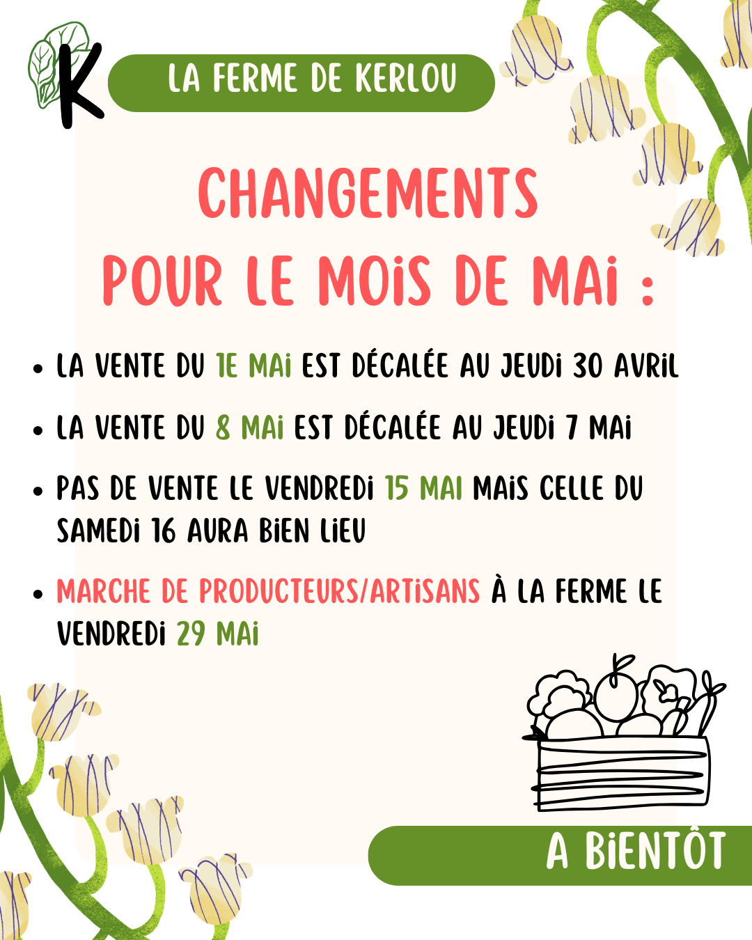 Nous avançons les deux prochaines ventes au jeudi sur les mêmes horaires 16h-19h30. William PAINS & CO nous livrera, vous pourrez donc trouver du pain et des viennoiseries
